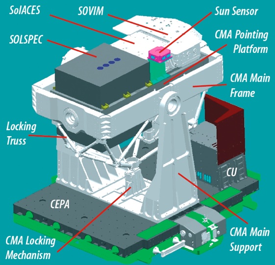 Les charges utiles externes sont fixées sur un adaptateur dénommé: Columbus External Payload Adapter (CEPA). SOLAR est l’une de ces charges utiles équipée d’un pointeur solaire.